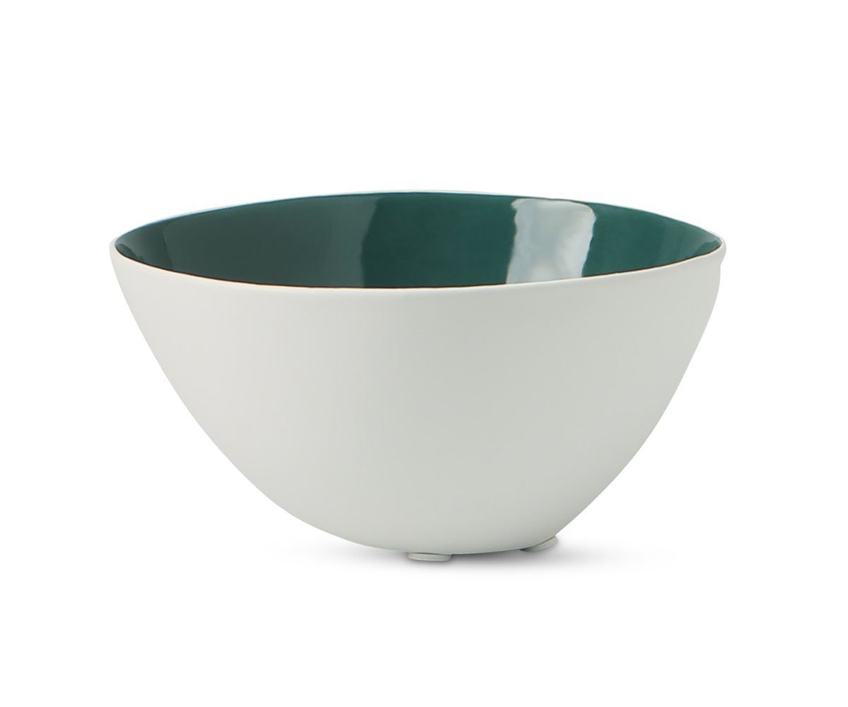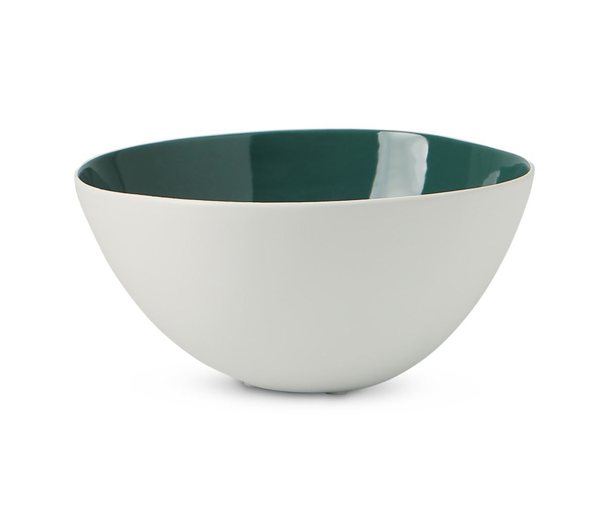 Admire the simple, organic form of the Caryn ceramic bowl. Its white outside blends with any decor, while the glossy inside provides a fresh burst of color. Find the perfect spot on your tabletop or shelf and use this decorative piece to enhance your living space.