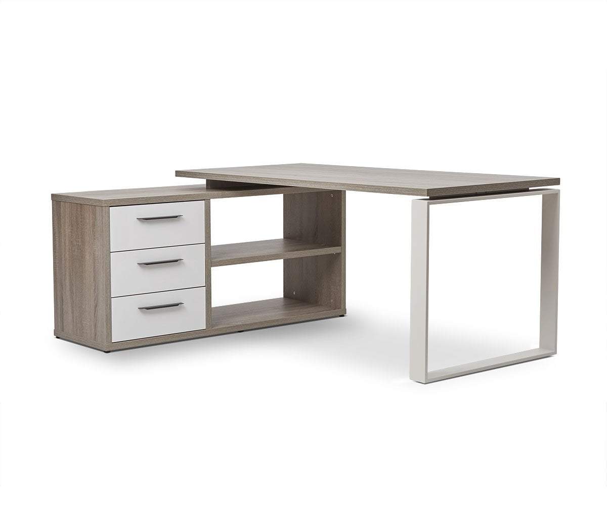 Select the Gammel desk with storage return to create an attractive work environment that encourages productivity. Featuring ample surface space and three drawers combined with an open cabinet, organization and storage come easily. Made in Italy of eco-friendly materials, the white high gloss drawer fronts enhance the truffle oak finish of the desk and cabinet. Equip your office with modern style and neutrals that fit with many decor themes.