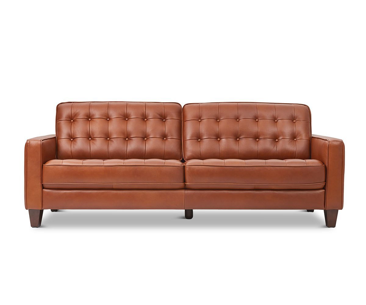 The Gustav leather sofa easily becomes a focal point in your living space, featuring a modern, low-profile and handsome button-tufted design. Wrapped in the highest grade leather, natural markings inherent in the hide enrich over time, ensuring no two pieces are alike and that Gustav will be cherished for years to come.