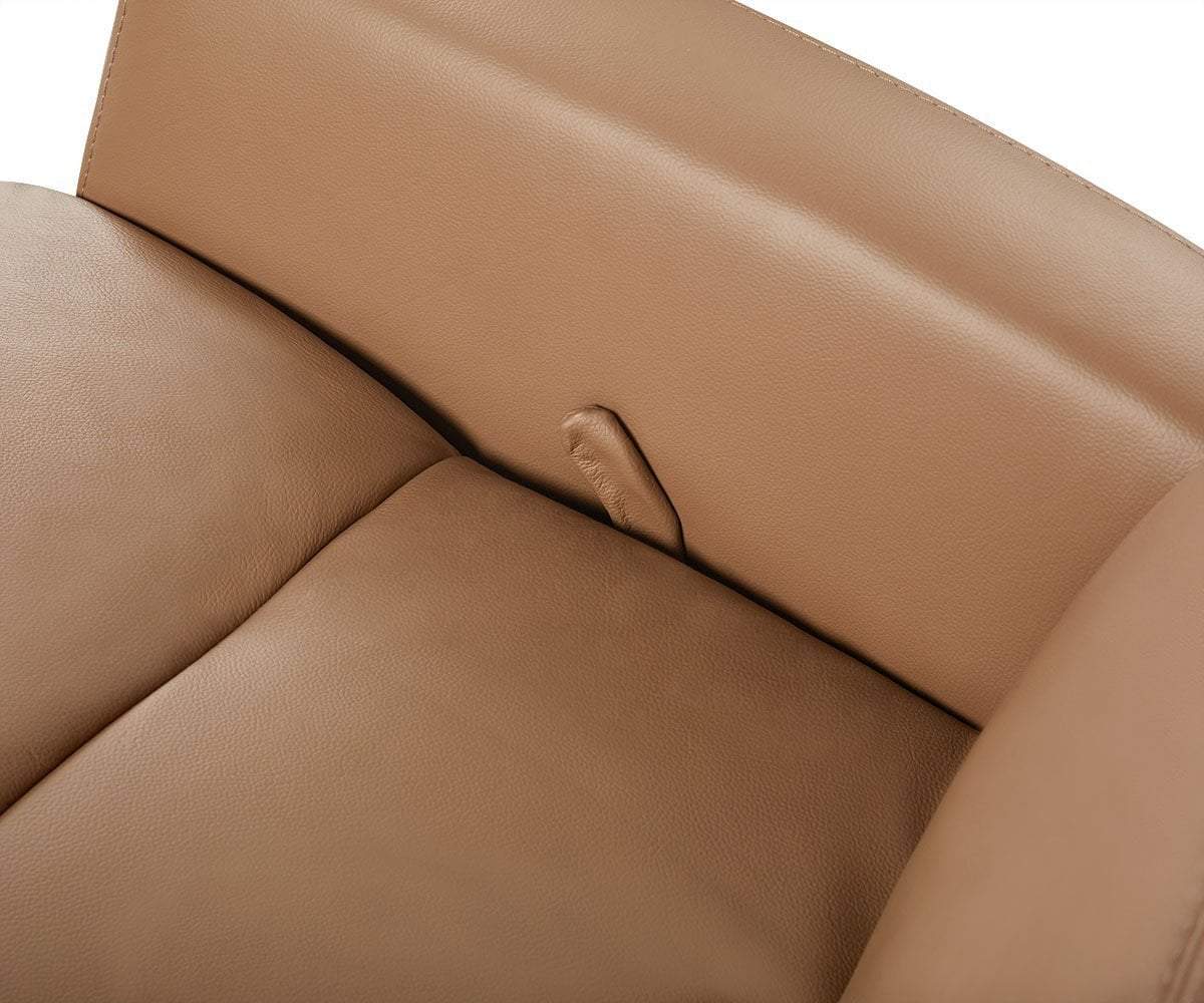 Establish your home comfort zone in grand style with the Hedvig manual recliner. Upholstered in fine leather, it provides full body support from head to toe while allowing you to swivel, glide, rock or recline to your heart’s content. You will find the lever for the reclining feature cleverly wrapped in matching upholstery and located inside the seat area. Designed with durability in mind, this chair will provide years and years of relaxation. Just settle in, put your feet up and unwind.