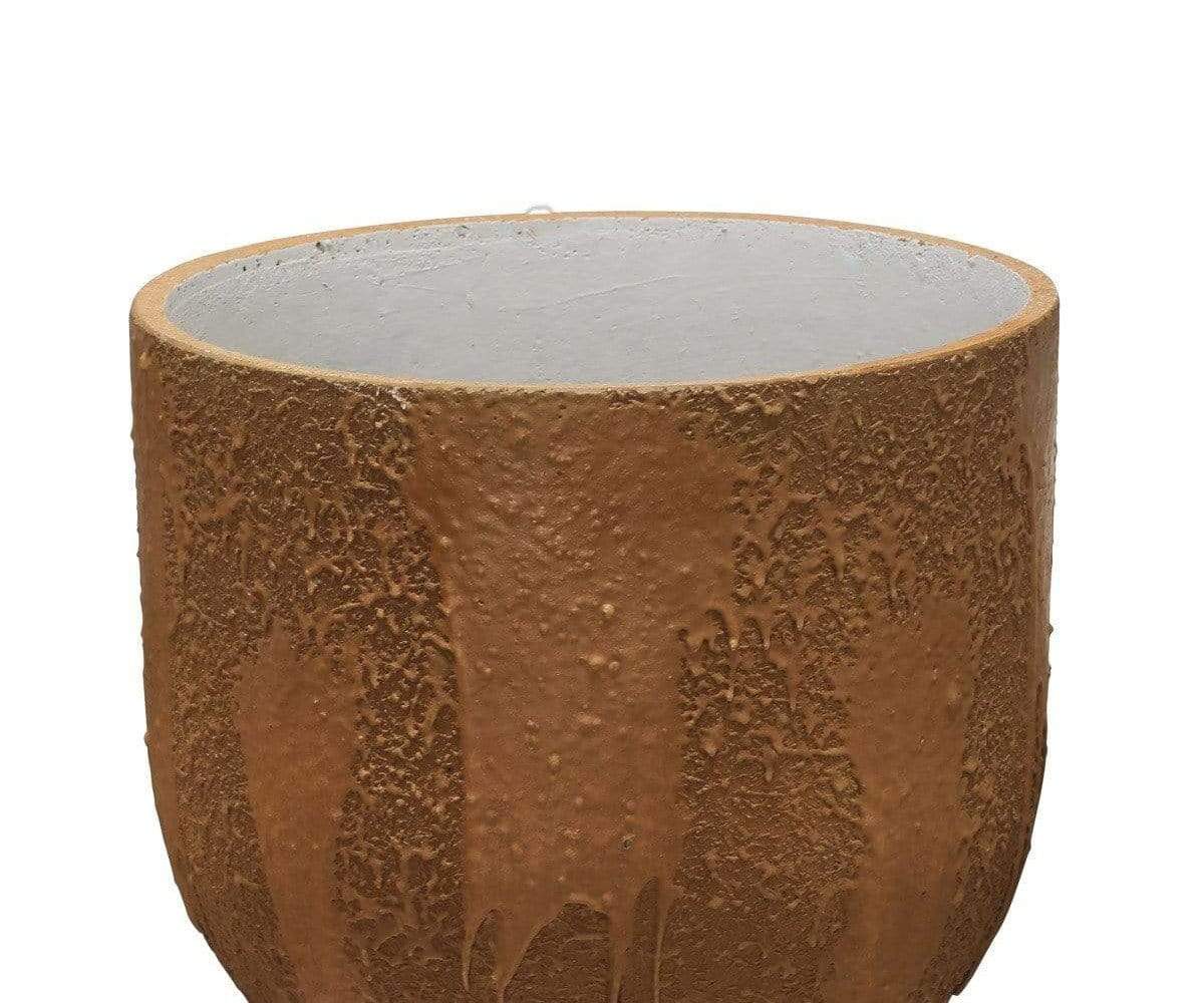 With a distressed brown finish, the Hindri planters bring striking contrast to vivid foliage. Made from a faux-concrete composite, these durable planters offer the look of concrete without the weight. Frost-resistant and waterproof, they are suitable for indoor and outdoor use.